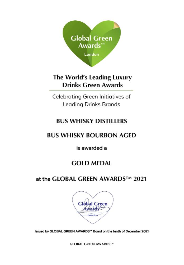 De Global Green Award is ’s werelds meest toonaangevende duurzaamheidsaward voor luxe drankenmerken en eerder door CNN uitgeroepen tot 'meest invloedrijke drankcompetitie ter wereld'. Bus Whisky won naast goud in Hongkong in 2021 ook al medailles bij de London Spirits Competition in London (zilver) en de USA Spirits Ratings in San Francisco (brons).